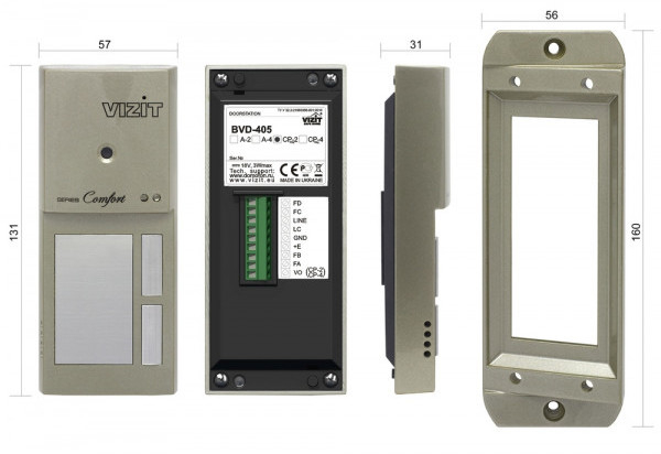 Комплект блока вызова на 2 абонента для совместной работы с БКМ-444. Встроенная телекамера цветного изображения с функцией День-ночь (380 tvl, PAL, 0 Lux / ИК подсветка для телекамеры, объектив PINHOLE 90 ). Подсветка кнопок вызова и шильдов. Подставка для поворота блока на 20 . Считыватель RD-3, ключи VIZIT-RF2.1 - 5/10/20 шт. в комплекте.