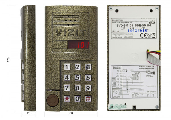 БВД-SM101R - блок вызова до 100 абонентов используется в составе многоквартирных домофонов VIZIT и обеспечивает двухстороннюю дуплексную связь между посетителем и абонентом, а также открывание замка двери подъезда - из квартиры в режиме разговора нажатием кнопки на абонентском устройстве, ключами VIZIT-RF2.х снаружи подъезда, нажатием кнопки EXIT изнутри подъезда.