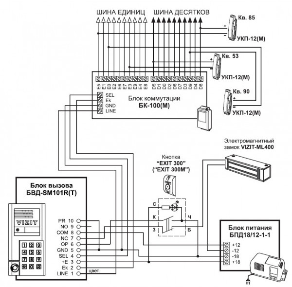 Для подключения абонентских устройств VIZIT (УКП) к подъездной линии домофона применяются блоки коммутации.