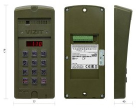 Блок вызова до 100 абонентов. Встроенная телекамера цветного изображения с функцией "День-ночь" (700 ТВЛ, PAL, 0 Lux, ИК подсветка, объектив PINHOLE 90°). Встроенный контроллер до 600 ключей (до 6 ключей на каждую квартиру) VIZIT-RF2 (EM-Marin). Возможность автоматической записи ключей - режим «Акцепт». Светодиодный дисплей. Подсветка клавиатуры. Корпус блока вызова выполнен из ударопрочного, стойкого к атмосферным воздействиям пластика "поликарбонат". -30...+45 °С, 77х179х36 мм