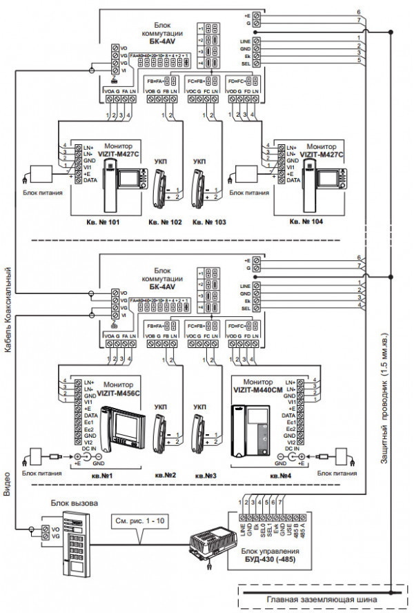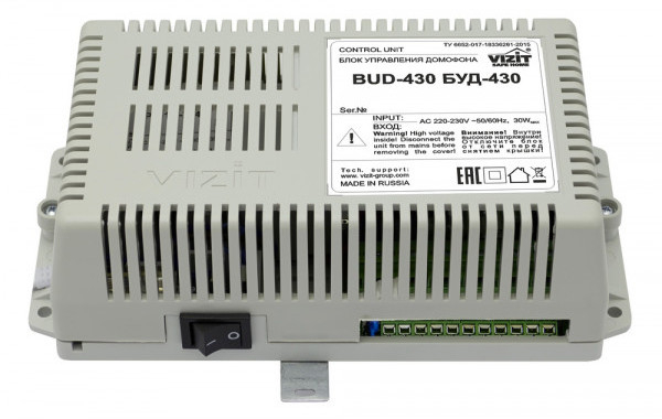 БУД-430- блок управления домофона на 400 абонентов (через БК-400) работает в комплекте c блоками вызова серий 300 и 400 ( кроме БВД-311, БВД-313,БВД-321,БВД-341 ) для подъезда жилого дома.