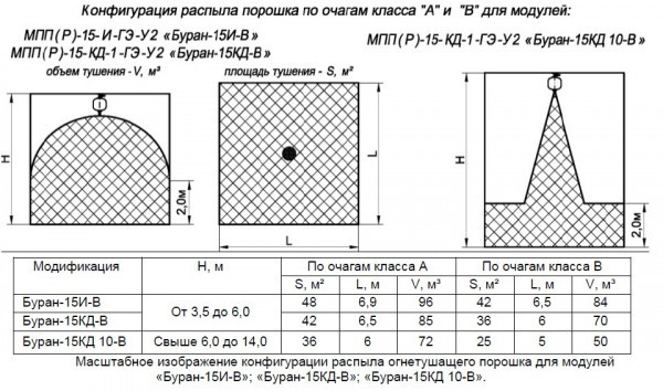 Буран-15И взрывозащищенный - модуль импульсного порошкового пожаротушения взрывозащищённый (РВExdlX/1ExdllBT3X), степенью защиты (IP54), с 1-им кабельным вводом для открытой прокладки кабеля диаметром (5 - 9 мм), с температурным диапазоном эксплуатации (от -50 до +50°С), без режима самозапуска (при достижении определённой температуры срабатывания) - только электрозапуск предназначен для автоматического подавления очагов пожара классов А (твердых веществ), В (жидких веществ), С (газообразных веществ) и Е (электрооборудования, находящегося под напряжением без учёта параметра пробивного напряжения огнетушащего порошка).