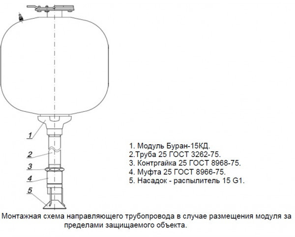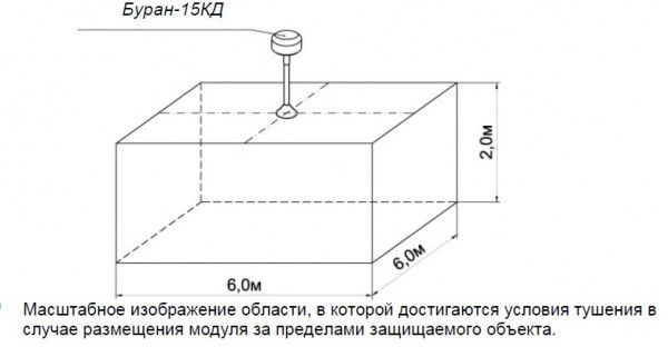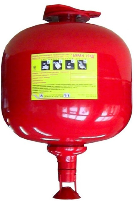 Буран-15КД - модуль кратковременного действия порошкового пожаротушения в нормальном исполнении с температурным диапазоном эксплуатации (от -50 до +50°С), без режима самозапуска (при достижении определённой температуры срабатывания) - только электрозапуск, возможностью подсоединения через выпускное отверстие направляющего трубопровода с распылителями (приобретаются отдельно) предназначен для автоматического подавления очагов пожара классов А (твердых веществ), В (жидких веществ), С (газообразных веществ) и Е (электрооборудования, находящегося под напряжением без учёта параметра пробивного напряжения огнетушащего порошка).