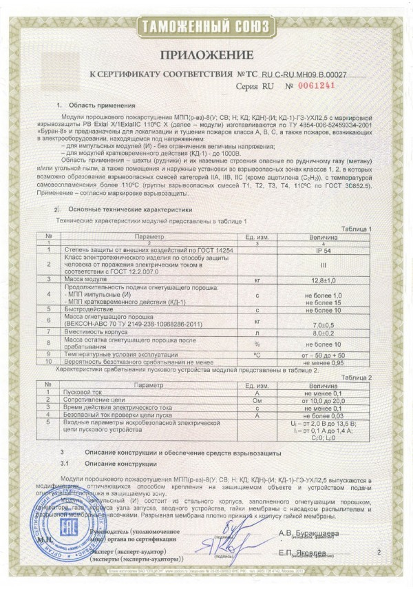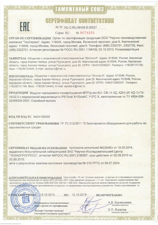 Модуль порошкового пожаротушения взрывозащищенный