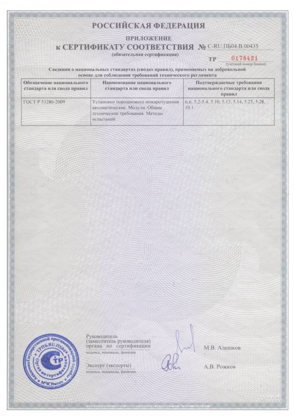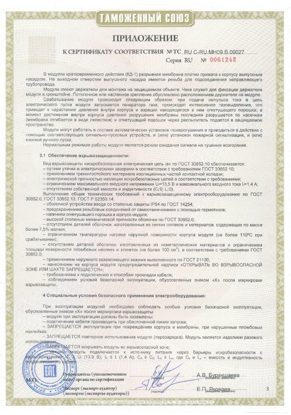 Масса остатка порошка в модуле после срабатывания, %, не более 1