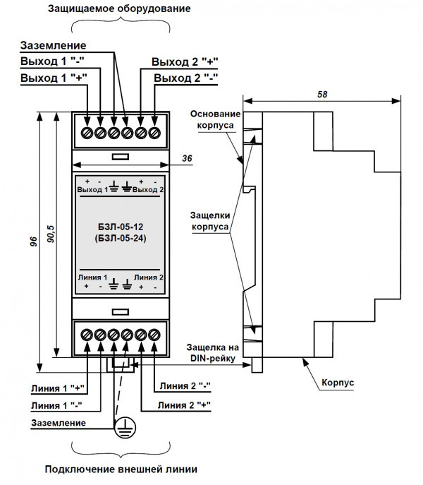 Используется для защиты оборудования, подключенного к шлейфам сигнализации (извещатели охранные и пожарные, сетевые контроллеры шлейфов сигнализации СКШС), линиям связи и линиям вторичного питания систем сигнализации. БЗЛ-05 содержит – два канала защиты линии (шлейфы сигнализации или линии электропитания).