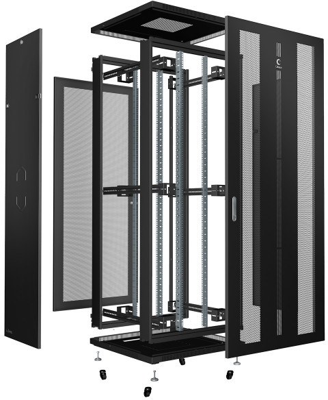 Cabeus ND-05C-42U80/100-BK - напольный сборный с перфорированными (передняя и задняя) дверками телекоммуникационный шкаф 19" с габаритами 42U (1972х800х1000 мм) предназначен для размещения распределительного и серверного оборудования.