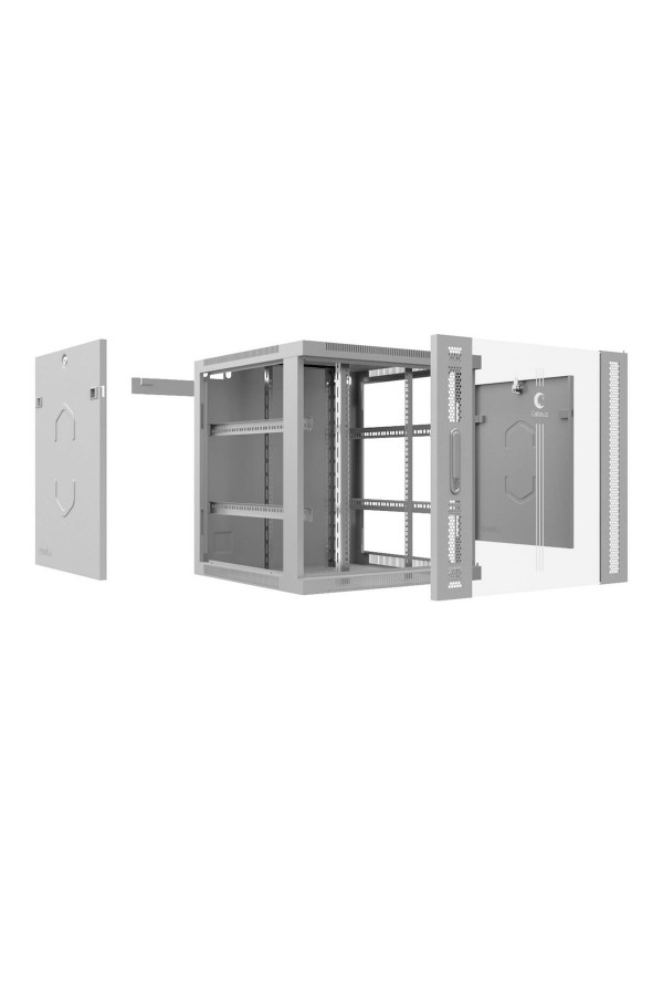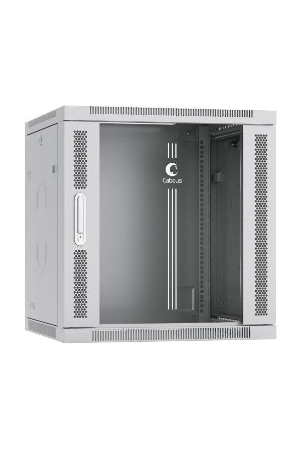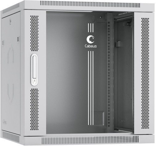 Cabeus SH-05F-12U60/60 дверь стекло - настенный сборный с передней стеклянной дверкой телекоммуникационный шкаф 19" с габаритами 12U (600х600х635мм) предназначен для размещения распределительного и серверного оборудования и организации ЛВС небольшой емкости.