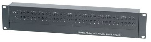 Распределитель с усилением видеосигнала для крепления в монтажной стойке 1U, 16 входов, 32 выхода, расстояние передачи 1000 м. при использовании кабеля RG-59