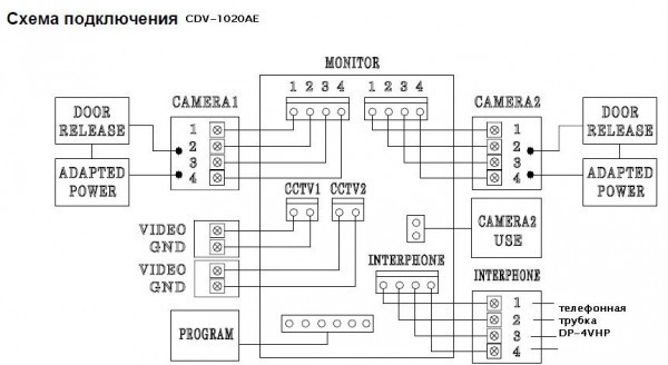 Возможно подключение дополнительно аудио трубки COMMAX DP-4VHP, параллельное подключение суммарно до 3-ёх мониторов домофонов CDV-1020AЕ.
