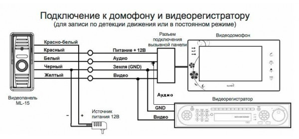 Подключение монитора к подъездному домофону происходит с помощью блока сопряжения: