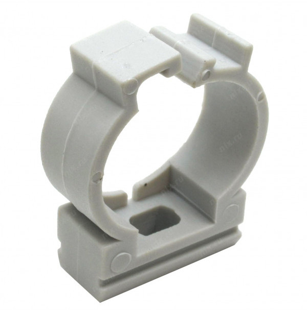 CFC20G Держатель с защёлкой для труб d-20 (41620-100) - держатель серого цвета из ABS-пластика с крепёжным отверстием, защёлкой и посадочным диаметром 20 мм. (100шт./уп.) для жёсткой фиксации гофрированной или жесткой гладкой трубы к поверхности стен, потолков, полов или перегородок.