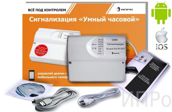 Часовой-8х8-RF BOX GSM - это GSM-сигнализация, имеющая 8 проводных входов (НЗ и НР извещатели), так и 16 входов для подключения радиоканальных датчиков и является упрощенной версией прибора Часовой-8х8-RF BOX GSM 3G MMS.
