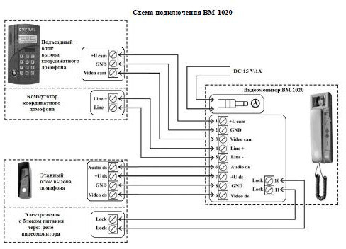 Подключение монитора к подъездному домофону сторонних производителей происходит с помощью блока сопряжения: