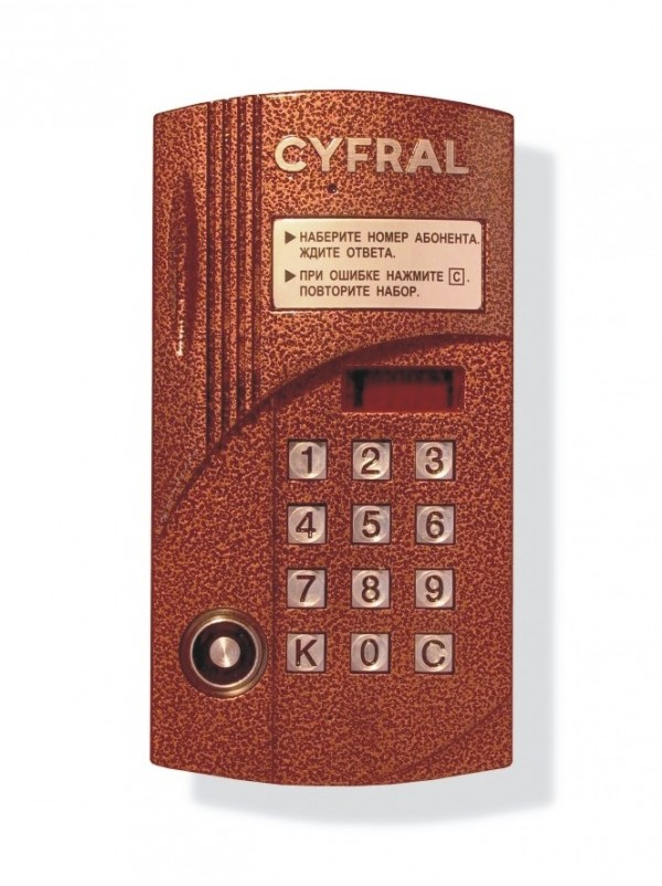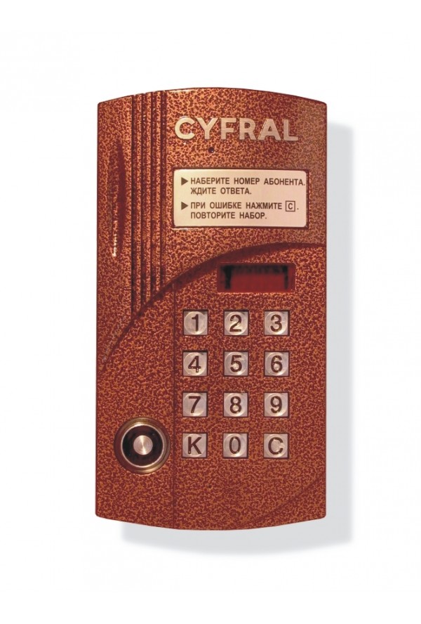 До 100-абонентов используется с коммутатором КМГ-100М координатная линия связи подсветка клавиатуры встроенная телекамера (ч/б, 380tvl, 0,01lux, PINHOLE) возможно использование частью абонентов в качестве квартирных устройств - трубок, другой частью абонентов - видеомониторов Цифрал .