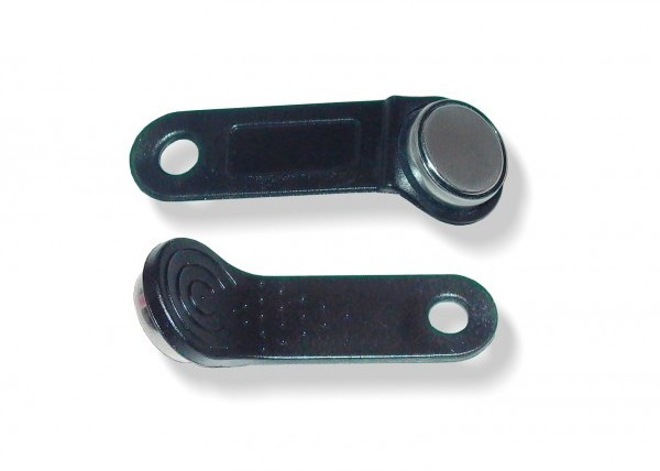 Корпус Touch Memory, по виду напоминающий металлическую дисковую батарейку, легко крепится в пластмассовом держателе.