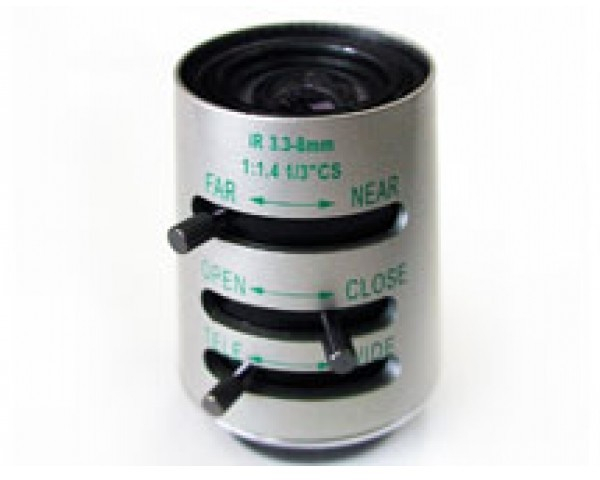 CS, 1/3 f=3.3-8 мм, 83 - 62 гр/горизонт, F 1.4-Close, вариообъектив,ручная регулировка диафрагмы, IR, 30x52 mm,110 гр