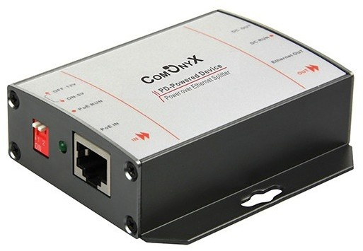 PoE сплиттер, предназначен для разделение питающего напряжения и данных, передаваемых по Etherne. Разделение PoE линии на линию Ethernet и линию 5/12VDC. PoE вход 15,4Вт (IEEE802.3af )или 25,5Вт (IEEE802.3at). Автоопределение типа PoE. Скорость передачи 10/100/1000 Мбит/с. Выходы - DC 5/12VDC (выбирается переключателем), 12/24Вт (определяется типом PoE) и выход Ethernet. Питание от PoE линии. Вес 145г, размеры 80x76x25мм. Металлический кожух IP20, возможность крепления на стену.