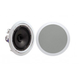 Один динамик конический вуфер 6 . Диапазон рабочих частот 110 Гц - 18 кГц. Мощность 10 Вт (3/6). Подключение к линиями 70/100 В. SPL 92 дБ (макс. 101 дБ). Потолочный, бескаркасный, крепление заподлицо. Материал ABS-пластик, решетка из стали. Габариты 230х85 мм, вес 0,9 кг.