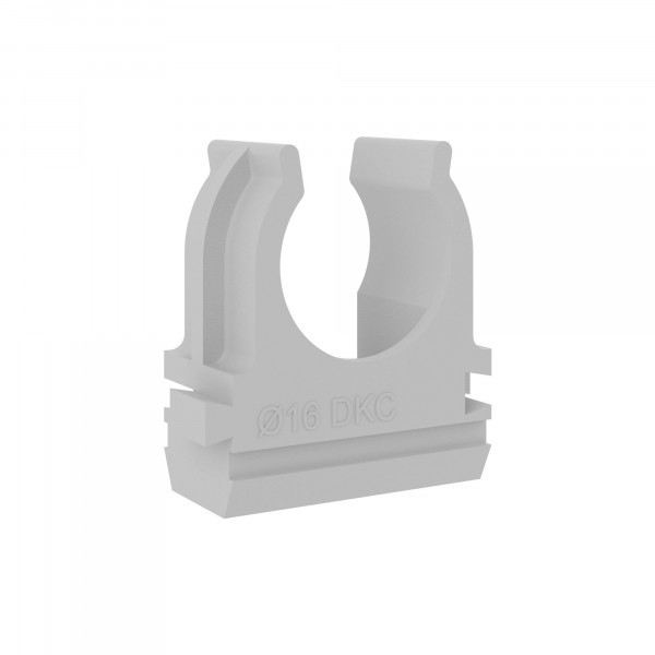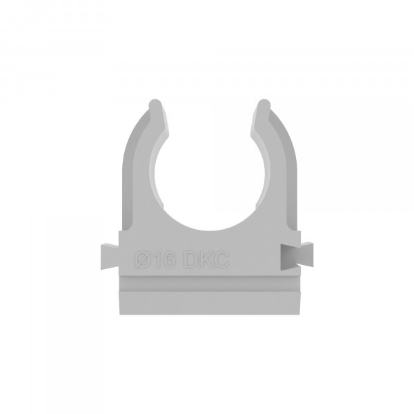 Держатель с защёлкой для труб d-16 (51016) DKC - держатель серого цвета из ABS пластика + полипропилена с крепёжным отверстием, защёлкой и посадочным диаметром 16 мм. (100шт./уп.) для жёсткой фиксации гофрированной или жесткой гладкой трубы к поверхности стен, потолков, полов или перегородок.