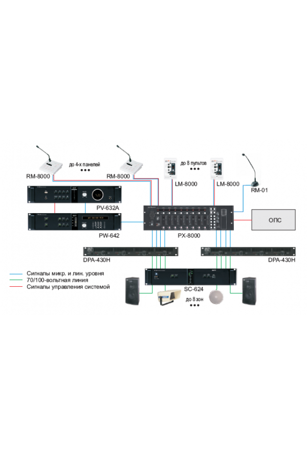 DPA-430Н - цифровой трансляционный 4-зонный усилитель выходной мощностью 300 Вт (на каждый канал) предназначен для усиления звукового сигнала с целью его дальнейшей трансляции на громкоговорители с питанием 100 В.