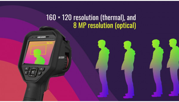 DS-2TP21B-6AVF/W - компактный ручной термограф с встроенными: 2-ух спектральным совмещённым тепловизионным и настраиваемым оптическим - 2, 5, 8Мп модулями, 3,5ʺ сенсорным LCD-экраном с разрешением - 0,3Мп (640×480), модулем памяти на 16 ГБ, звуковым оповещением, Wi-Fi модулем, функциями - измерения температуры (от +30 до +450С) объекта (в т.ч. тела человека) с точностью (±0,5°C) в режиме реального времени и окрашиванием цели (Поддержка режимов: Black hot, White hot, Red hot, Rainbow, Ironbow, Fusion, Rain), поддержкой 2-ух сторонней аудиосвязи, питанием - DC (5)В на 2А/Съемная перезаряжаемая литий-ионная батарея , степенью защиты - IP54.
