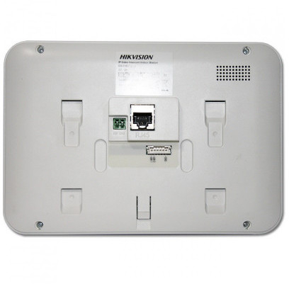 Сенсорный 7 цветной TFT LCD экран с разрешением 800 400 встроенные микрофон и динамик 8 тревожных входов 1 RJ-45 10M/100M Ethernet DC12В/PoE(от DS-KAD606, DS-KAD612) 10Вт -10 C...+55 C размер 195.8 132.8 17.5мм.