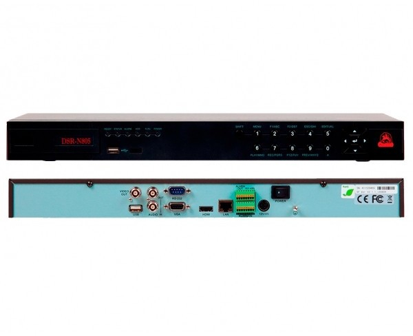 Сетевой видеорегистратор для работы с IP камерами (до 5 Мп). Количество каналов - 16, Битрейд - 40 Мбит, HDD - 2 SATA до 3 Тб. Видеовыходы - VGA, HDMI (до 1920х1080), BNC, Входы/выходы охраны - 4/2, питание 12В, 445 261 44.5 мм. 4 кг.