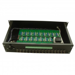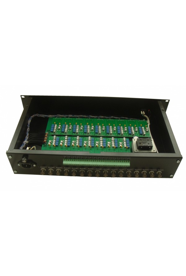 Количество видеовходов-16 (винтовые колодки), количество видеовыходов-16 (разъем BNC), габариты 2U, глубина 240 мм.