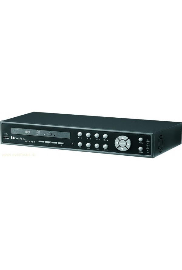 4-х канальный пентаплексный регистратор. H.264 суммарная скорость записи - 50 к с (704х576), 100 к с (704х288), 200 к с (352х288) Основной монитор - 1 VGA (800х600),1 BNС 4 тревожных входа, 1 выход 1 аудиовход (MIC), 1 аудиовыход (Speaker) детектор движения 1 HDD SATA (в комлект не входит),Gigabit Ethernet DVD-RW USB-2x2 RS-232, RS-485 DC12B,60Вт БП, ИК-пульт и мышь в комплекте, 320 х 208,9 х 54,3 вес 3 кг., 0+40С.
