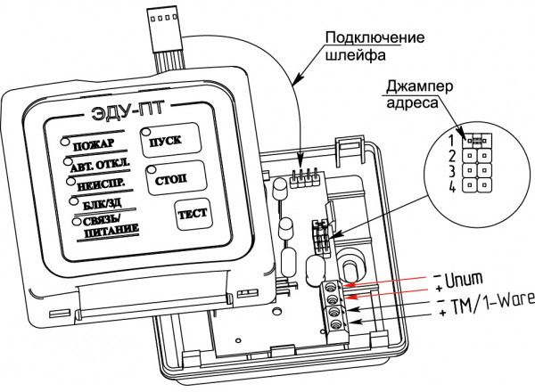 Каждый ЭДУ-ПТ имеет адрес в линии для отображения на ППКП, с какого конкретно ЭДУ-ПТ производится управление.