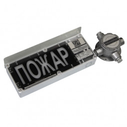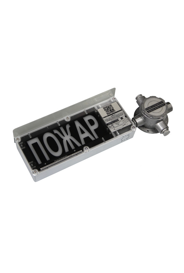 ЭКРАН-а-СЗ-ККВ-К1 ПОЖАР - взрывозащищенный адресный свето-звуковой оповещатель (Табло) без дополнительных секций, с алюминиевой коммутационной коробкой (ККВ-07е-К), постоянным (по заявке) или мигающим свечением надписи, внутренней искробезопасной цепи (ib) и напряжением питания цепей оповещения (10,5 - 28В) предназначен в качестве средства оповещения в системах пожарной сигнализации во взрывоопасных зонах.