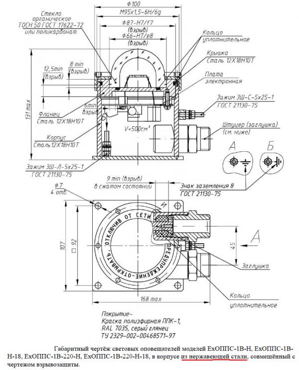 - Оповещатель световой взрывозащищенный ExОППС-1В-Р-Н-ТG3/4