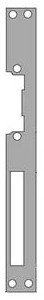 OPENERS - CLOSERS F 43 Silver (F 63 Inox) - накладка длинная с вырезом под нижний ригель из нержавеющей стали несимметричная для стандартных, повышенной надёжности, высокопрочных и огнестойких электрозащёлок OPENERS - CLOSERS серий: 4R и 4L, 10, 11, 12, 13, 20, 21, 22, 23, 24R и 24L, 25, 49.