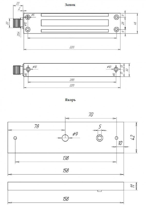 FE-L280W - компактный влагозащищённый (IP66) электромагнитный накладной (удерживающий, однодверный) замок, без отсека для установки контроллера, возможностью подключения датчика холла через 1 реле (НО и НЗ), в корпусе и якоря (ответной части) из нержавеющей стали, с усилием удержания 280 кг, напряжением питания - DC (10,8 - 26,4)В, током потребления - 0,35А, диапазоном рабочих температур от -40 до +50оС, с габаритными размерами - 220х46х30мм, массой - 0,9 кг предназначен для запирания лёгких и средних дверей толщиной от 35 до 50мм, открывающихся наружу.