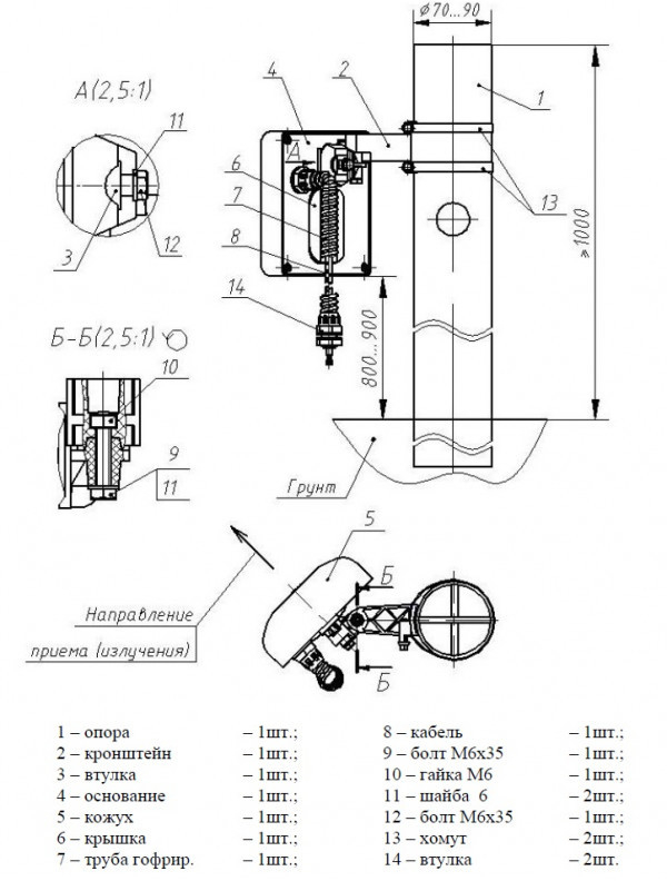 - установка на стене через крепёжные отверстия или кронштейны, на опору - через ленточные хомуты (всё в комплектации).