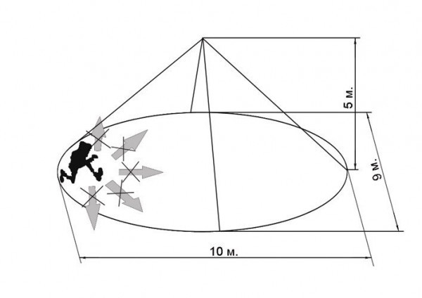 Оптико-электронный, ПИК потолочной установки, объемная зона обнаружения, высота установки 2,5 м - диаметр зоны 5 м, высота установки 5 м - диаметр зоны 10 м, -40…+50 град. С, 12 В
