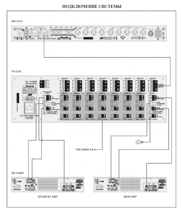 - Автоматическое включение резервного усилителя в случае отключения основного усилителя.