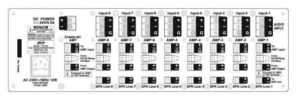 Аварийный переключатель резерного усилителя (1 резерв на 8 усилителей, работает только с блоком FD-20 усилителей JPA-XXXXDPT), 220 В(AC)/24 В(DC), 12 Вт, 483x133x350 мм