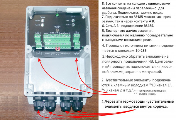 В случаях, когда зона охраны находится в отдалении от прибора, для подключения чувствительного элемента необходимо использовать нечувствительный соединительный кабель типа РК-50, РК-75.