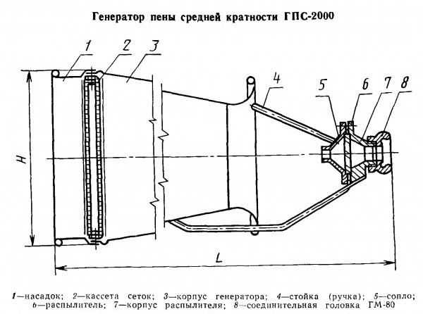 ГПС-2000 - генератор пены средней кратности производительностью - 2000 л/с и условным присоединительным диаметром (80мм) предназначен для получения воздушно-механической пены из водного раствора пенообразователя, а также формирования струи и подачи ее при тушении возгораний горючих и легковоспламеняющихся жидкостей.