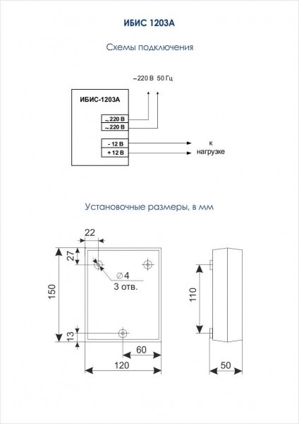 ИБИС-1203А - импульсный источник питания, обеспечивающий стабилизированным напряжением постоянного тока электронные устройства систем охранно-пожарной сигнализации, видеонаблюдения, телекоммуникационного оборудования и других потребителей.