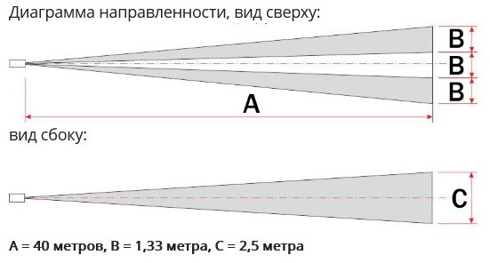 Зона обнаружения "коридор" 40х3х2 м, Iпотр.=16 мА