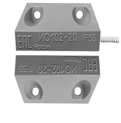 ИО 102-20 Б3П (2) - извещатель накладной охранный точечный магнитоконтактный с перекидными типа (НО и НЗ) контактами, в корпусе из пластмассы и цвета (белый, серый, чёрный - указать в заказе), с проводным выводом в пластиковом гофрорукаве и длиной (0,6м) предназначен для блокировки гаражных ворот, ангаров, железнодорожных контейнеров, телефонных шкафов и других конструктивных магнитопроводящих (металлических) и магнитонепроводящих (алюминиевых, деревянных и т.д.) элементов зданий и сооружений на открывание и смещение с выдачей в шлейф приёмно-контрольного прибора извещения о тревоге путем переключения контактов геркона.
