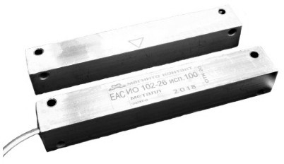 ИО 102-26 исп. 102 "Металл" - извещатель накладной охранный точечный магнитоконтактный с перекидными типа (НО и НЗ) контактами, в корпусе из алюминиевого сплава и серебристого цвета, с проводным выводом кабеля КСПВГ 3х0,2 и длиной (1м; другая - под заказ) без защитного рукава предназначен для блокировки гаражных ворот, ангаров, железнодорожных контейнеров, телефонных шкафов и других конструктивных магнитопроводящих (металлических) и магнитонепроводящих (алюминиевых, деревянных и т.д.) элементов зданий и сооружений на открывание и смещение с выдачей в шлейф приёмно-контрольного прибора извещения о тревоге путем переключения контактов геркона.