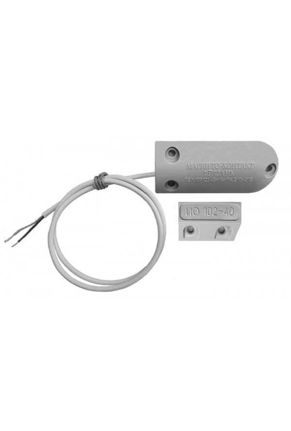 ИО 102-40 А2П (1) - извещатель накладной охранный точечный магнитоконтактный с нормально-открытого типа (НО) контактами, в корпусе из пластика и цвета (белый, серый, чёрный, коричневый, терракотовый - указать в заказе), с проводным выводом в двойной изоляции и длиной (0,6м; другая - под заказ) без защитного рукава предназначен для блокировки гаражных ворот, ангаров, железнодорожных контейнеров, телефонных шкафов и других конструктивных магнитопроводящих (металлических) и магнитонепроводящих (алюминиевых, деревянных и т.д.) элементов зданий и сооружений на открывание и смещение с выдачей в шлейф приёмно-контрольного прибора извещения о тревоге путем размыкания контактов геркона.