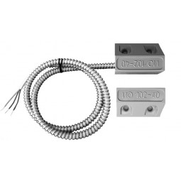 Извещатель магнитоконтактный. Переключающие, рабочий зазор не менее 15 мм. Корпус металлический, неразборный, согласно ГОСТ Р 52435. Защитный рукав из металла. Вандалозащищенный.