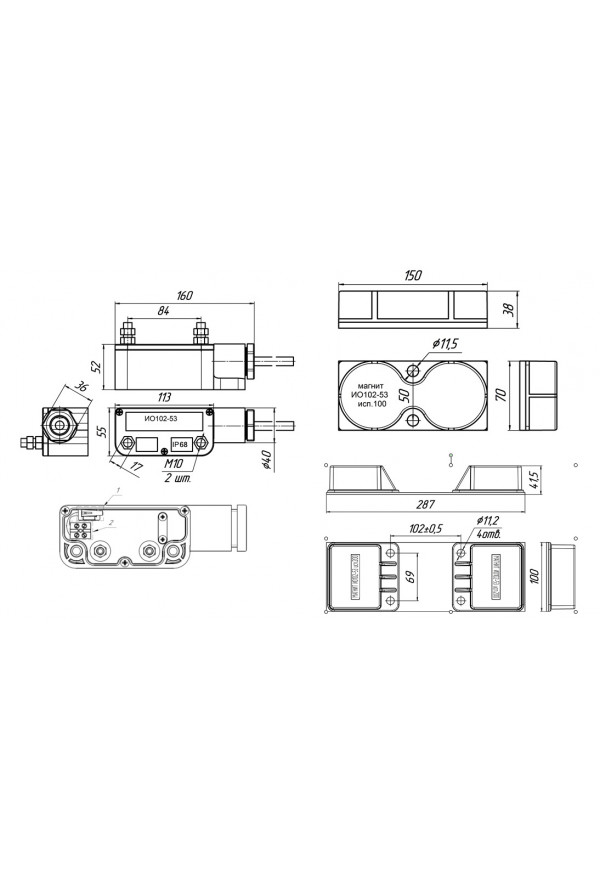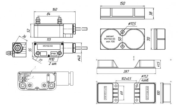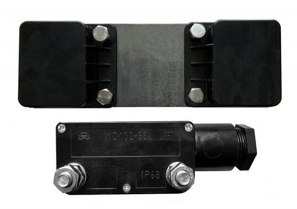 ИО 102-53 исп.40 - извещатель накладной охранный точечный магнитоконтактный с контактами типа (НО), в корпусе из пластика и чёрного цвета, с контактными болтами охранного шлейфа и тамперными клеммами для подключения через 1-ин кабельный ввод кабеля диаметром (6,5 - 12мм) и сечением жил (не более 0,75мм2) предназначен для блокировки гаражных ворот, ангаров, железнодорожных контейнеров, телефонных шкафов и других конструктивных магнитопроводящих (металлических) и магнитонепроводящих (алюминиевых, деревянных и т.д.) элементов зданий и сооружений на открывание и смещение с выдачей в шлейф приёмно-контрольного прибора извещения о тревоге путем размыкания контактов геркона.