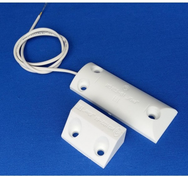 Малогабаритный извещатель охранный, точечный, магнитоконтактный, накладной, для наружного и внутреннего монтажа на металлических (магнитопроводящих) либо неметаллических конструкциях с защитным гофрорукавом. Конструктивно состоит из 2-х элементов датчика магнитоуправляемого (геркона) и элемента задающего (магнита). Тип применяемого геркона нормально разомкнутый.