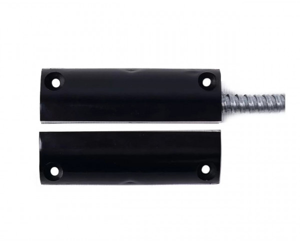 ИО102-ВЗ Атон исп.21Ч - извещатель чёрного цвета охранный искробезопасный взрывозащищённый (0ExiaIICT6GaX) точечный магнитоконтактный с переключаемыми типа (НО и НЗ) контактами, в антистатическомом полиамидном корпусе, с проводным выводом в металлическом гофрорукаве и длиной (1м), степенью защиты (IP68) и предназначенным для блокировки гаражных ворот, ангаров, железнодорожных контейнеров, телефонных шкафов и других конструктивных магнитопроводящих (металлических) и магнитонепроводящих (алюминиевых, деревянных и т.д.) элементов зданий и сооружений на открывание и смещение с выдачей в шлейф приёмно-контрольного прибора извещения о тревоге путем переключения контактов геркона.